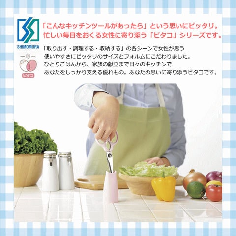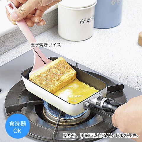 | 「こんなキッチンツールがあったら」という思いにピッタリ。 忙しい毎日をおくる女性に寄り添う「ピタコ」です。 ●奥から手前に返せるハンドルの長さ ●玉子焼きが上手に作れるターナー ●玉子焼き1ヶ分の皿形状 |