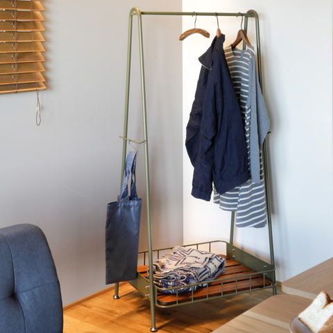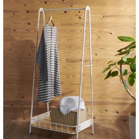 | デッドスペースになりがちなポールの下にカゴを設け、収納スペースとしてご使用いただけます。足元の棚には大容量のスペースを確保。 コンパクトでありながら充実した収納力が魅力です。 |