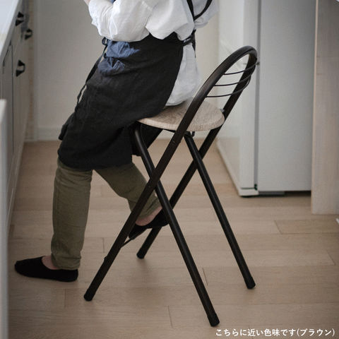 | 現在販売中のハイテーブルセットのお問い合わせでこの椅子単体の購入を希望される方が多かった為、単品販売を開始いたしまた。 ブラック(座面ブラウン木目)、ブラウン(座面ナチュラル木目)のシンプルでスタイリッシュな折り畳みパイプイスです。 コンパクトで省スペースで収納できるのでワンタッチで折り畳みキッチンの片隅に立てかけて、お料理の途中でレシピをみたり、ちょっとひとやすみするのにとても便利です。 ※注意※踏み台としてのご使用は絶対にしないでください。 |