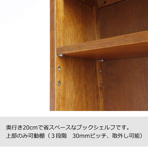 | 奥行き20cmで省スペースなブックシェルフです。 木目が繊細でやさしい表情をしているオーク材突板を使用し、落ち着いた雰囲気があります。 圧迫感がなくコンパクトサイズでコーディネートが楽しめます。 |
