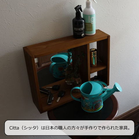 | Citta(シッタ)は日本の職人の方々が手作りで作られた家具。 上下左右、好きな方向で使えるボックスミラー。小物も収納でき玄関などにあると便利でおしゃれです。年月の経過と共に深みのある色合いに変化する杉材の特徴もお楽しみ下さい。 |
