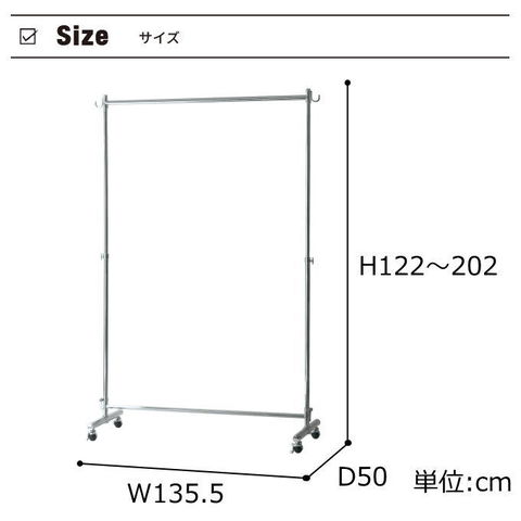| (約):幅135.5×奥行50×高さ122-202cm |