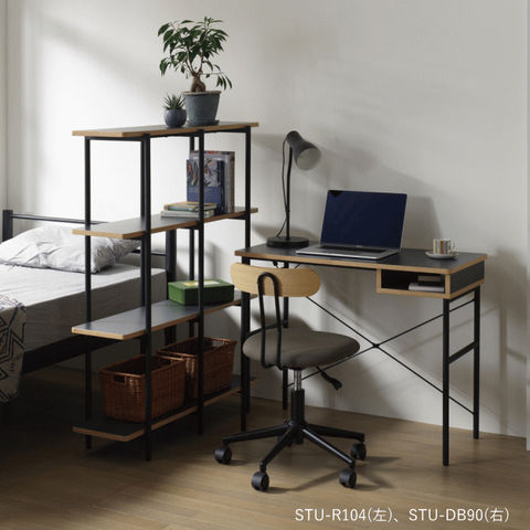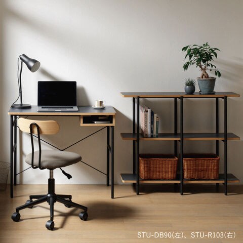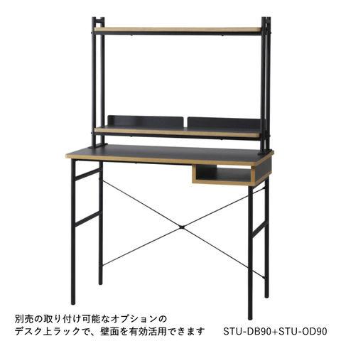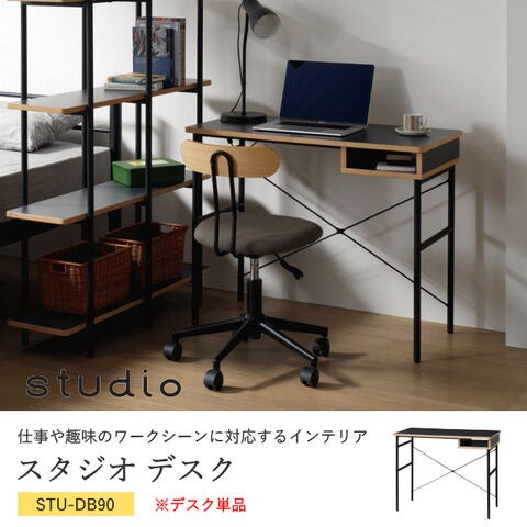 デスク 幅90cm ワークスペース 事務 テレワーク コンピューター PC カウンター 台 書斎 勉強机 作業台 収納 テーブル メラニン シンプル オーク クラフト工房 北欧 スタジオ studio STU-DB90 弘益 新生活 送料無料