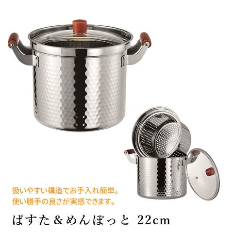 パスタ鍋 22cm 鍋 IH対応 ガス火OK パスタポット パスタパン 満水容量 6.7リットル ステンレス製 ぱすた&めんぽっと 22cm なべ ナベ お鍋 化粧箱入り
