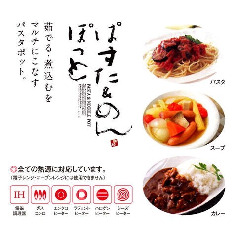 | 茹でる、煮込むをマルチにこなすパスタポット。 扱いやすい構造でお手入れ簡単 使い勝手の良さが実感できます。 | |