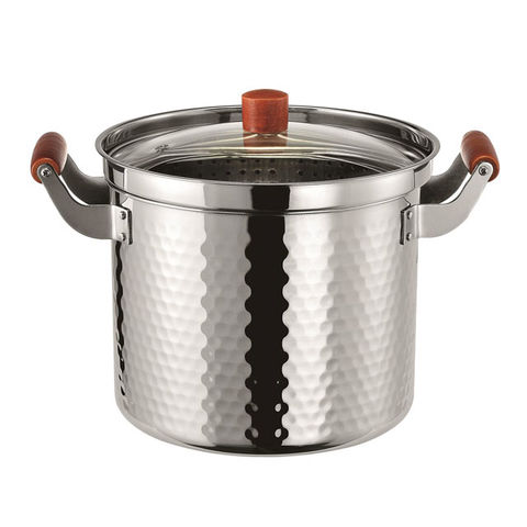 | 材 質 | 本体/ステンレス(クロム18%)、底厚:0.6mm 中かご/ステンレス(クロム18%)、蓋/強化ガラス |