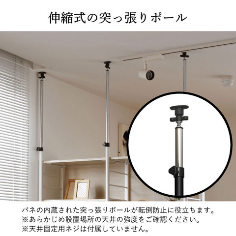 | 組立サイズ:幅117.5×奥行30.5×高さ208~290cm 棚板サイズ:幅56×奥行24cm |