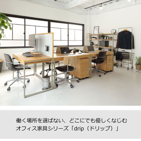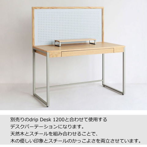 | 働く場所を選ばない、どこにでも優しくなじむオフィス家具シリーズ「drip(ドリップ)」 別売りのdrip Desk 1200と合わせて使用するデスクパーテーションになります。 天然木とスチールを組み合わせることで、木の優しい印象とスチールのかっこよさを両立させています。 |