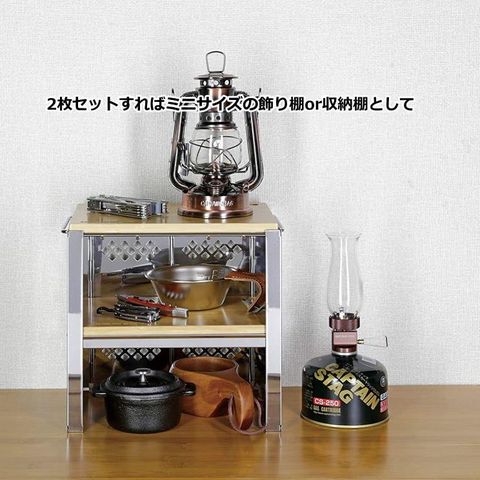 | 別売りのUG-0042 カマドスマートグリルB5型(3段調節)の天板にぴったりです。 2枚セットすればミニサイズの飾り棚としてもご使用いただけます。 まな板、スキレットや鋳物の鍋敷き、カマドスマートグリルの天板など用途は様々です。 |