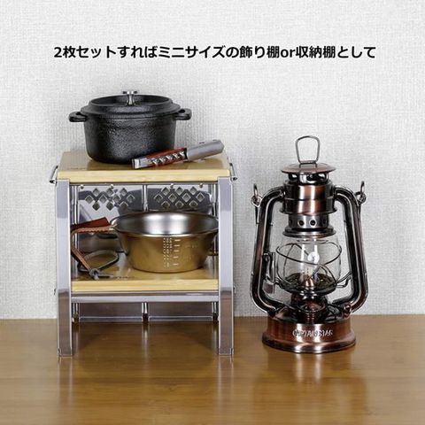 | 別売りのUG-0043 カマドスマートグリルB6型(3段調節)の天板にぴったりです。 2枚セットすればミニサイズの飾り棚としてもご使用いただけます。 まな板、スキレットや鋳物の鍋敷き、カマドスマートグリルの天板など用途は様々です。 |