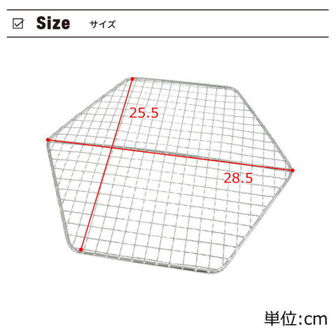 | 285x255mmの交換網です。 ヘキサステンレスファイアグリル<M> M-6498でご使用いただけます。 |