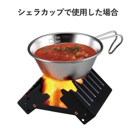 | ゴトクが2段階に開閉。 シェラカップから角型クッカーまで幅広く使える。 |