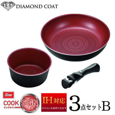 クックサイン ブルーダイヤモンドコーティング 取っ手が取れるフライパン3点セットBの解説