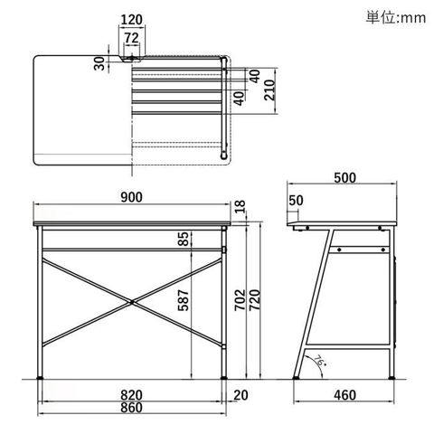 | 組立サイズ、幅90×奥行50×高さ72cm、棚サイズ:幅82×奥行21cm |
