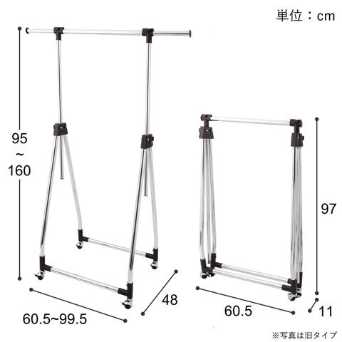 | 組み立て時/幅60.5~99.5×奥行48×高さ95~160cm、折りたたみ時/幅60.5×奥行11×高さ97cm |