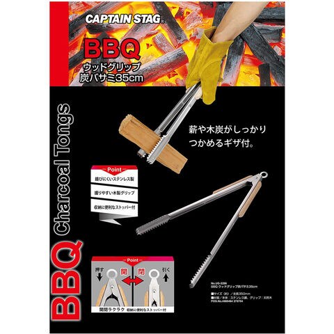 品番:P01-1-60-UG-3286※品名:炭バサミ 火ばさみ 薪ばさみ 炭 トング 炭ばさみ 焼肉 バーベキュー BBQ 35cm コンパクト ソロ キャプテンスタッグ 木製 焚き火 焚火 ソロキャンプ バーベキュー キャンプ飯 レジャー コンパクト ロング ゴミ拾い