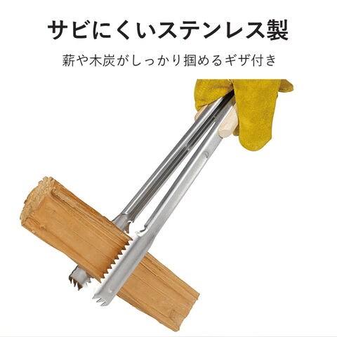 | 薪や木炭がしっかりつかめるギザ付 開閉ラクラク 収納に便利なストッパー付き |