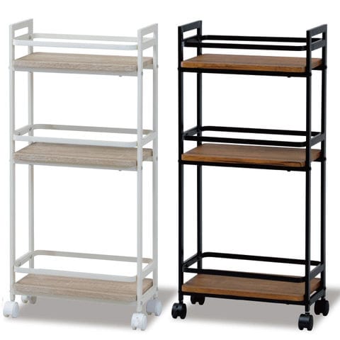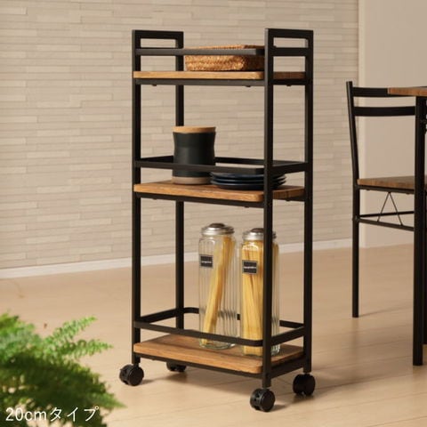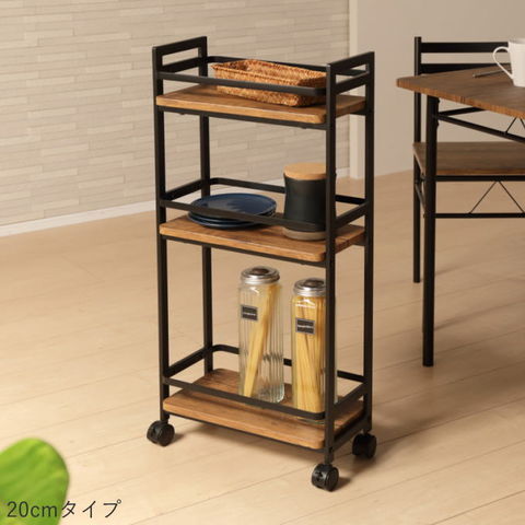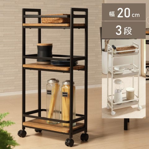 品番:K02-1-120-VWG-200NA※品名:スリム ワゴン キャスター付き 20cm 3段 棚 スリムワゴン マルチワゴン スリムストッカー キッチンストッカー キッチンワゴン キャスター付きワゴン 隙間収納 木目調 天板付き スリム 収納