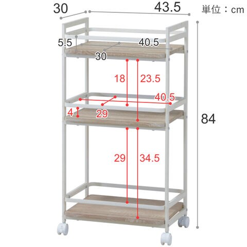 | 組立式、棚板は固定 キャスター付き(2個ストッパー付き) |