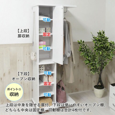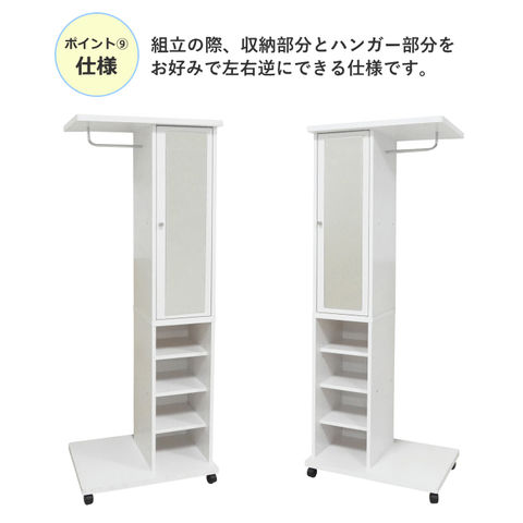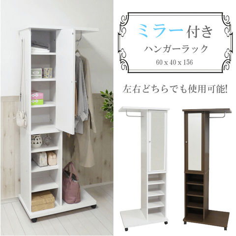| ハンガーラック ミラー付 鏡付き 棚 木製 スリム 幅60 奥行40 キャスター 収納 ハンガー ラック 62136 62137 クロシオ |