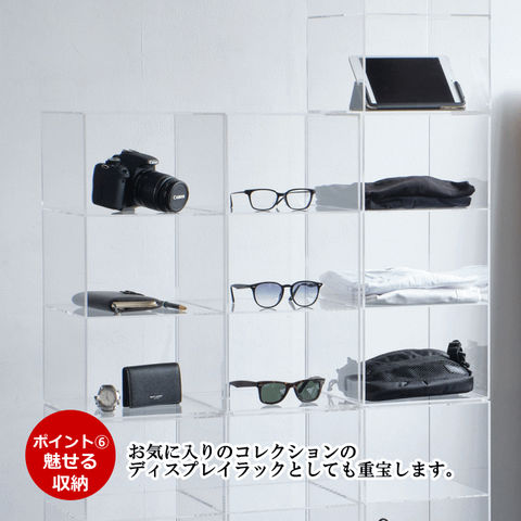 | アクリル(側板5mm厚、棚板4mm厚、地板8mm厚) |