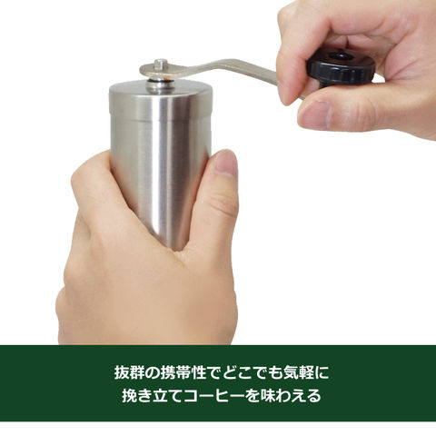 | 抜群の携帯性でどこでも手軽に挽き立てコーヒーを味わえる。 挽き具合を調整できる。 ※コーヒー豆/最大約30g(約3杯分) |