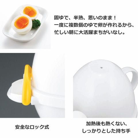 | 固ゆで、半熟、思いのまま! 一度に複数個のゆでたまごが作れるから、忙しい朝に大活躍まちがいなし。 |