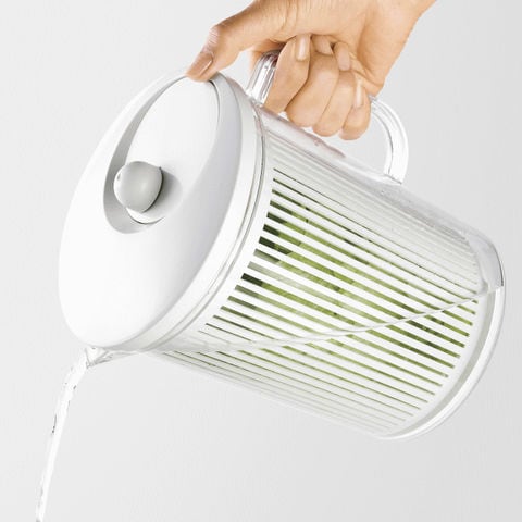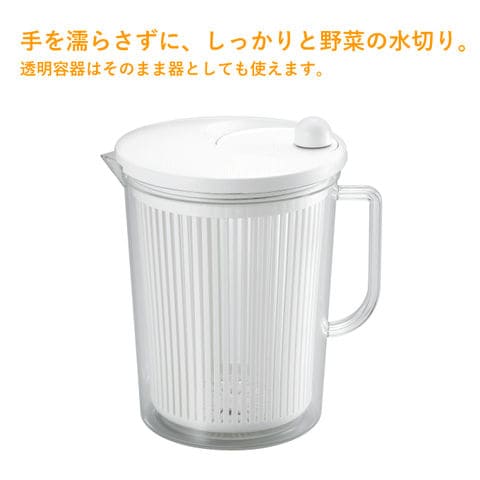 | 手を濡らさずに、しっかりと野菜の水切り。 透明容器はそのまま器としても使えます。 |