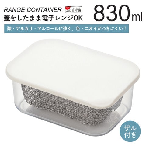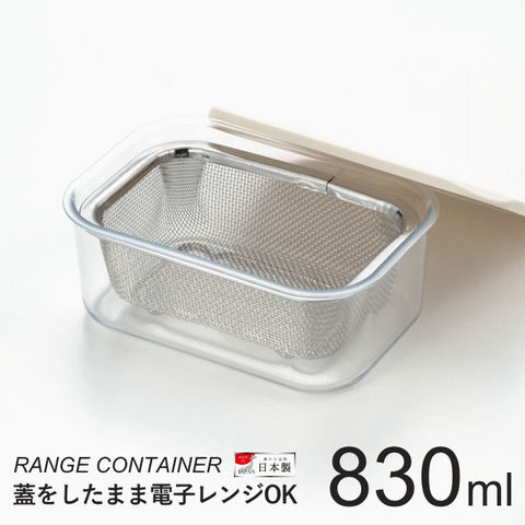 保存容器 ザル付き 830ml 日本製 プラスチック ステンレス 小 ざる ザル 電子レンジ 冷蔵 おしゃれ つくりおき 作り置き おかず フードコンテナ 大容量 保存 容器 レンジコンテナ