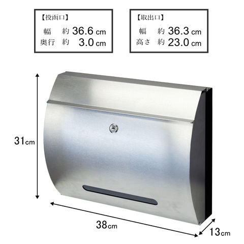 | 幅38×奥行13×高さ31cm 【投函口】幅36.6×高さ3.0cm 【取出口】幅36.3×高さ23.0cm |
