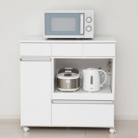 品番:K01-01-23699※品名:レンジ台 大型レンジ対応 キッチンワゴン 天板 付き カウンター レンジ ワゴン キッチン キャスター付き キャスター 4段 スリム 北欧 コンパクト 引き出し 収納 収納付き 完成品 23699 クロシオ