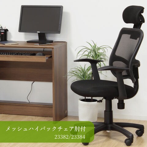 オフィスチェア メッシュ ハイバック チェア キャスター 付 オットマン クッション 背もたれ コンパクト シンプル 女性 組立品 23382/23384 クロシオ