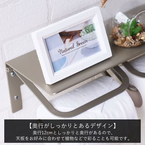 | 光沢を少し抑えたマットなアイアンで仕上げており、インテリア性の高いトイレ空間を彩るペーパーホルダーです。シングルタイプはコンパクトサイズで省スペースで設置が可能です。 【天板】 天板先端は反り返し仕様で、携帯電話やトイレットペーパーをおいても、反り返しで転落しにくくなっています。しっかりと奥行のあるデザイン(奥行12cm)ですので、天板上をお好みに合わせて植物などで彩る事も可能です。 【デザイン】 トイレットペーパー差込バーは、先端を少し曲げた仕様ですので、ペーパーの転落防止になります。トイレットペーパーを支えるバー付きで、ペーパーを引っ張る際のストッパーの役目を果たします。アイアン部は粉体塗装で仕上げ、耐久性に優れひび割れや剥がれ、錆が発生しにくい仕様となります。 【設置場所】 コンクリート壁・タイル壁取付用のアンカーも付属しています。 ※石膏ボード壁の場合は、壁奥の下地(木柱やベニヤ板等)に、木ねじで固定をお願い致します。 |