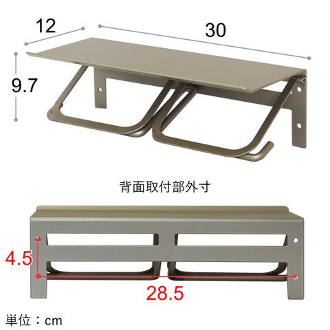 | 【本体】幅30×奥行12×高さ9.7cm 【背面取付部外寸】幅28.5×高さ4.5cm |