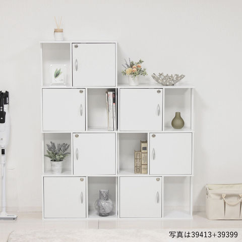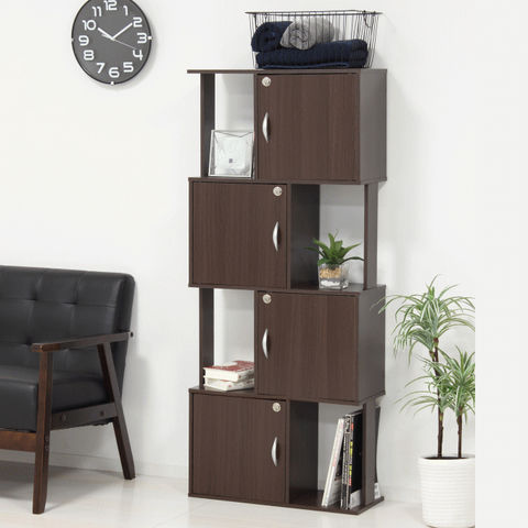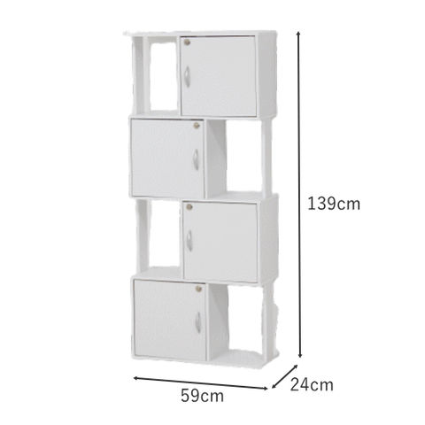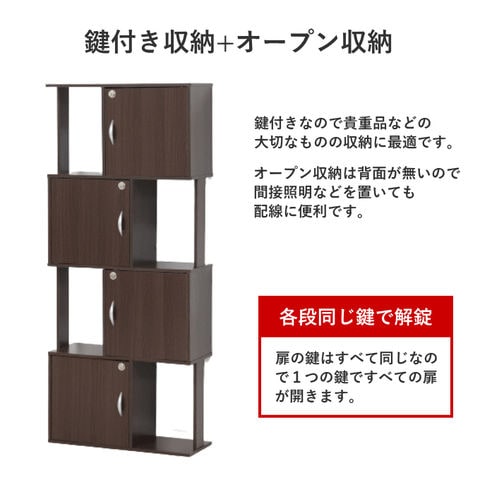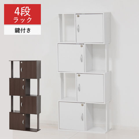 品番:K01-01-39413※品名:鍵付き 4段 ラック オープン収納 棚 39413 39424 スリム 本棚 木製 組立品 新生活 クロシオ