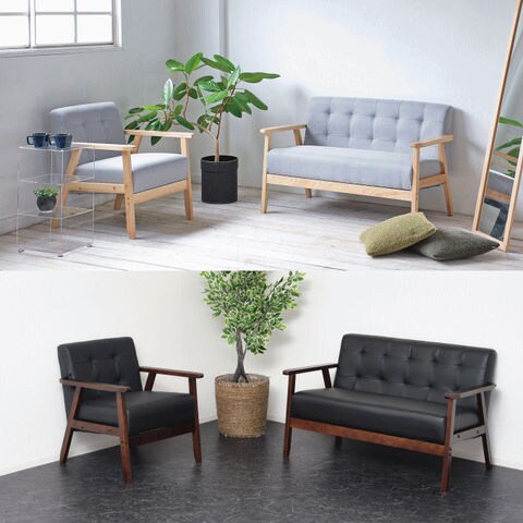 | 構造部材/天然木、表面加工/ウレタン塗装、張り材(ブラック)/合成皮革・(他)/ポリエステル90%・コットン10%、クッション材(背)/ウェービングベルト・ウレタンフォーム・(座)鋼製バネ・ウェービングベルト・ウレタンフォーム |