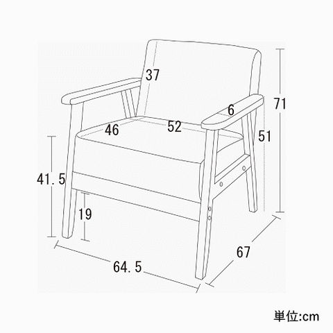 | 幅64.5×奥行67×高さ71(座面高さ41.5)cm |
