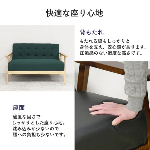 | 温もりを感じる天然木フレームの肘が雰囲気あるお洒落でシンプルでコンパクトなソファです。自分だけの空間をゆったり過ごすことができる二人用ソファ! 【肘掛け】 天然木の木目が美しい肘掛け。角は丸く加工していますので安心です。 【座面】 適度な固さでしっかりとした座り心地。沈み込みが少ないので腰への負担も少ないです。 【背もたれ】 もたれる際もしっかりと体を支え、安心感があります。圧迫感のない適度な高さです。 【脚裏】 床へのキズ防止のためにフェルトを貼っています。 【脚高】 床からソファ下までの高さは約19cm。ロボット掃除機が楽々入る高さです。 |