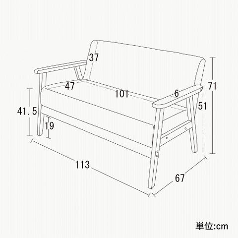 | 幅113×奥行67×高さ71(座面高さ41.5)cm |