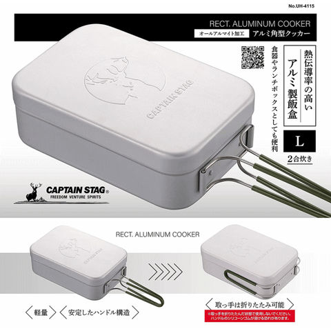品番:P01-1-60-UH-4115※品名:アルミ角形クッカーL メスティン 2合炊き 飯盒 コンパクト キャンプめし クッカー アルミ製角型クッカー 蒸し料理 ソロ キャンプ UH-4115 キャプテンスタッグ