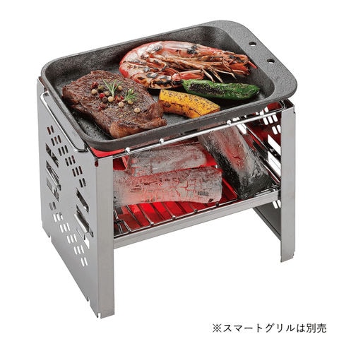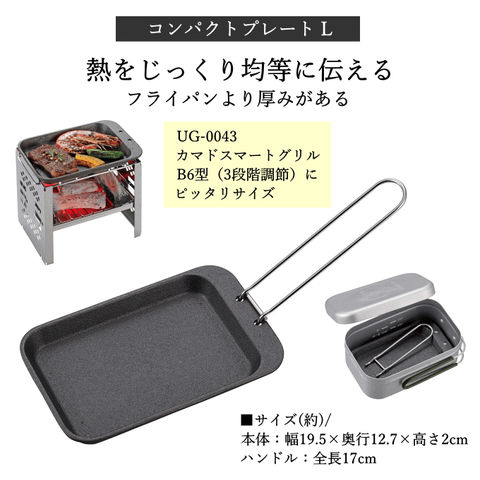 | フライパンより厚みがあり熱をじっくり均等に伝えます。 カマドスマートグリルB6型(3段調節)(UG-0043)にピッタリサイズ。 アルミ角形クッカーL(UH-4115)に収納できます。 |