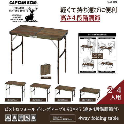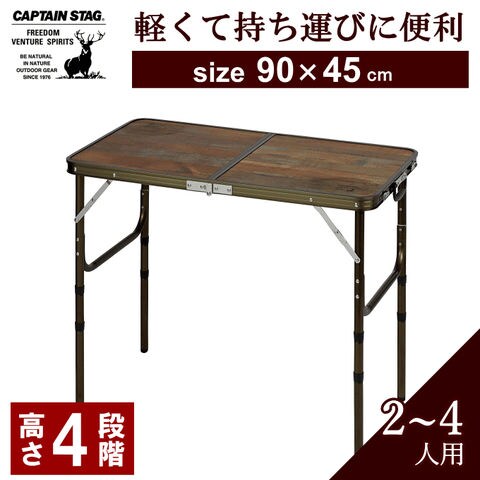 品番:P01-1-120-UC-0572※品名:フォールディングテーブル アウトドア テーブル 90×45 高さ調節 4段階 折りたたみ 軽量 アルミ コンパクト 折り畳み 2~ 4人用 キャプテンスタッグ
