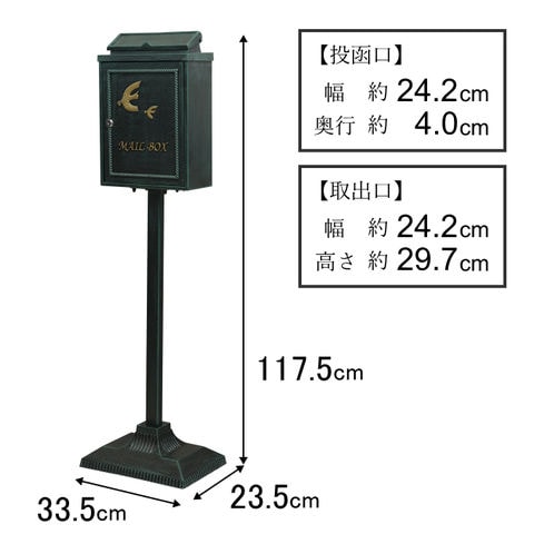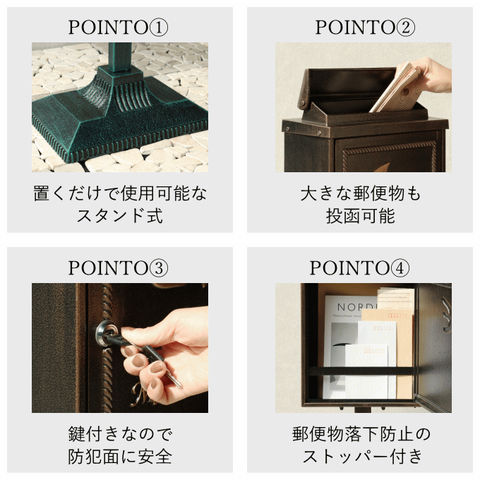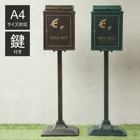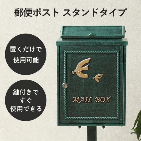 品番:M02-3-160-SDM-031※品名:郵便ポスト スタンドタイプ ポスト 置き型 スタンド スタンドポスト 鋳造 置き型ポスト メールボックス 新聞受け 鍵付き スタンド式 大容量 ポスト付き 家庭用 屋外 埋め込み おしゃれ 北欧 レトロ