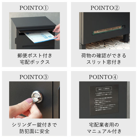 品番:M02-3-170-PBX-019※品名:宅配ボックス ポスト付き ポスト一体型 郵便ポスト 郵便受け 一戸建て用 大容量 置き型 ポスト 置き配ボックス スタンドポスト 置き型ポスト 大型 戸建て 自宅用 宅配ロッカー スタンド 宅配ポスト