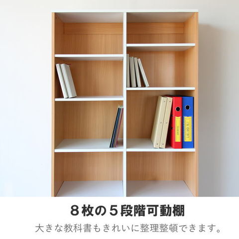 | 保育園・学習塾など、スクール等に最適なストレージラック。高さは180cmあるので、限られた場所でもたっぷりと収納することができます。また、横に連結することで塾の規模やスタイルに合わせて、大人数の施設にも対応。棚板は可動棚になっており、サイズの違う教材の大きさに合わせて、収納することができます。 あたたかみのある木目とシンプルなデザインで、学習空間のインテリアに馴染みやすいデザインです。 教材や学用品、学びに必要なものを壁面にまとめて収納できるので、すっきりと整理整頓された空間を創ります。 塾の規模や学習空間のスタイルに合わせて、並べて連結することが可能です。2個並べて使用する場合は、内側から連結金具を使用し固定をするため、安定性が向上します。 内側からの固定で、金属部分が表面に出てこないので、子どもにも安全な仕様になっています。 重たいと思っていた家具も、子どもがぶつかったり、ぶら下がったりした勢いで転倒することも。こちらのラックには、転倒防止の金属プレートがついており壁と固定できるため、子どもの学習空間にも安心してお使いいただけます。壁際に設置する際にも安心です。 金属プレートで壁にぴったりと固定することができるよう、巾木をよける加工を施しております。より安全に設置することができます。 また、隙間なく設置できるので、見た目もすっきり。隙間にホコリがたまりにくいので、お掃除も楽になります。 約3cm間隔で高さの調整できる、8枚の可動棚付き。大判のファイルなどの大きいものから文庫本など小さいものまで、サイズに合わせて効率よく収納することができます。高さは180cmあるので、教材や学用品・資料等を収納するのに十分なスペースを確保することができます。 整理整頓され教室環境整うことで、子どもたちが落ち着いて学習に専念できます。 |