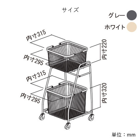 | フレーム:スチール 粉体塗装、カゴ:スチール 粉体塗装、カゴ取手:天然木化粧合板 |