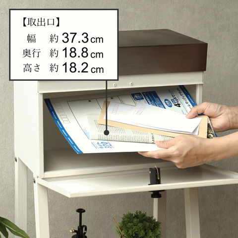 | 幅40×奥行30×高さ110cm 【投函口】幅35.8×奥行3.3cm 【取出口】幅37.3×奥行18.8×高さ18.2cm 【郵便入れ本体】幅40×奥行21.2×高さ29.7cm 【棚板上段】幅34.6×奥行22.1cm 【棚板下段】幅34.6×奥行28.4cm |