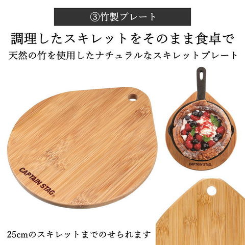 天然の竹を使用したナチュラルなスキレットプレート。