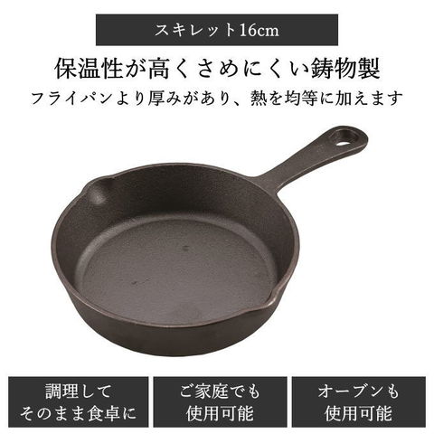 スキレット 16cm 鉄 フライパン グリルパン グリルプレート キャンプ アウトドア クッカー 鉄製フライパン UG-3027 キャプテンスタッグ