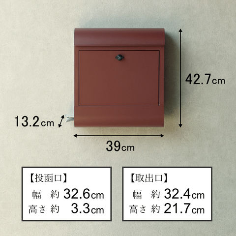 | 幅39×奥行13.2×高さ42.7cm 【投函口】幅32.6×高さ3.3cm 【取出口】幅32.4×奥行10.5×高さ21.7cm |